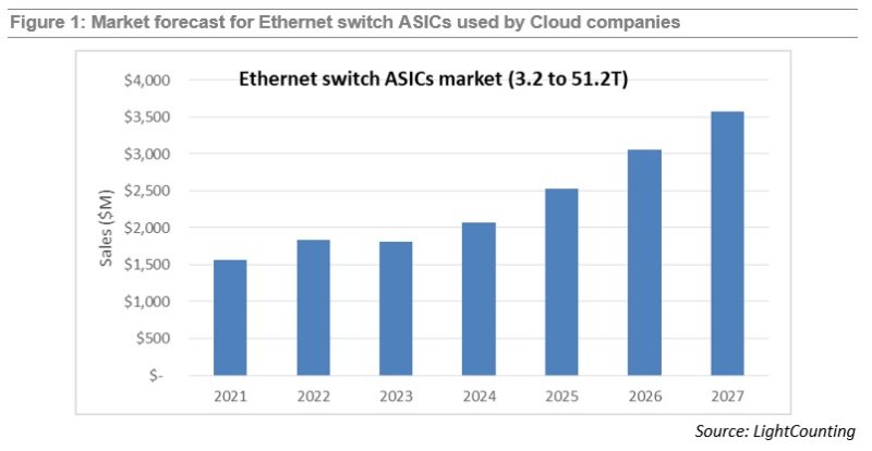 LightCounting表示,云计算公司对以太网交换机的需求为更高带宽的交换机和交换机ASIC创造了一个新的细分市场。它还改变了行业供应链,因为云计算公司开始使用内部设计的以太网交换机,并向更广泛的社区开放这些“白盒”设计。
