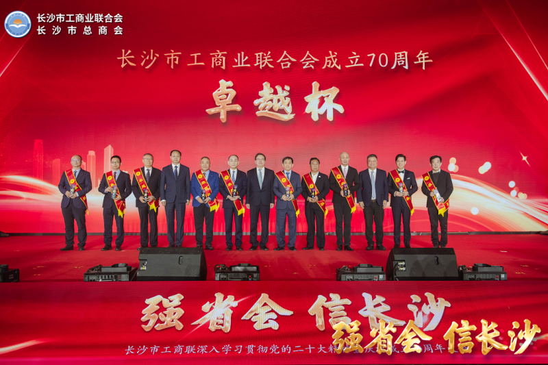 在“卓越”杯的颁奖词中,长沙市工商联这样写道,他们以领先行业的自信和赢胜全球竞争的勇气,乘着改革开放的东风,勇立潮头、御风而行;用追求卓越、精益求精的精神,塑造了企业茁壮成长的“根”和“魂”。以“心忧天下,敢为人先”的气魄,成为长沙企业家精神标杆。引领发展、诚信立业,敢闯敢创、善作善成,他们把企业发展同国家繁荣、民族兴盛、人民幸福紧密结合在一起,他们是新时代新征程的湖湘企业家杰出代表。