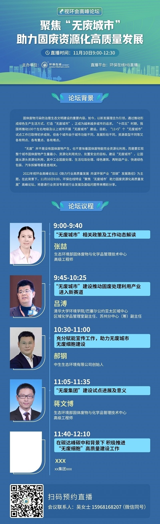 前方《聚焦“无废城市” 助力固废资源化高质量发展高峰论坛》报到!定好闹钟,11月10日上午9:00准时放送!PS:点击下方图片即可“闪现”进入直播间