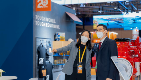 柳工别出心裁的展台设计与多款精巧礼品吸引了众多观众前来打卡、围观。