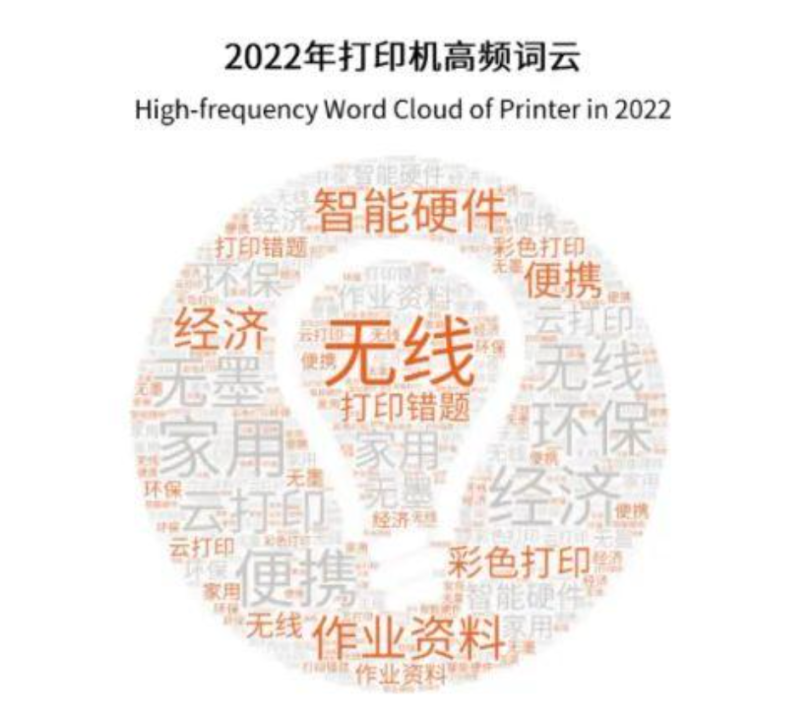 2022年艾媒商舆情数据监控系统的数据就显示,打印机与无线、便携、智能硬件和云打印等词条密切相连,反映出了消费者对家用打印机用户体验的更高要求。