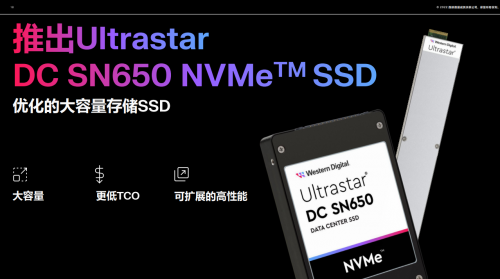 除了Ultrastar DC SN840 NVMe SSD,Ultrastar DC SN640 NVMe SSD等产品外,西部数据发布了配备BiCS5 3D TLC NAND和PCIe 4.0接口的15.36TB Ultrastar DC SN650 NVMe SSD,可以帮助云服务提供商更好地降低总体拥有成本,加速云服务的部署和数据中心的可持续扩展。