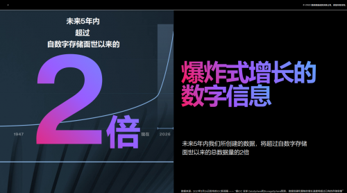 随着数字化转型的深入,数据呈现出指数级增长的态势。调查数据显示,全球数据量未来5年内将超过之前所有数据存储量的两倍。海量数据的诞生和数据的全生命周期的增加,对存储的需求越来越大,也对数据的有效管理提出更高的要求,还引发了对现有计算机体系结构的挑战。