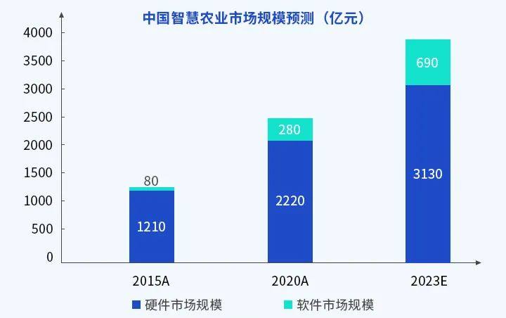 智慧农业作为一种全新的现代农业生产方式,目前不仅是各国现代农业科技竞争新高地,更是推动我国农业高质量发展,实现乡村全面振兴的关键所在。据相关报告显示,中国智慧农业市场需求规模高达2500亿元(2020年),2020-2023年市场空间增长预计保持15%的CAGR,潜力可观。