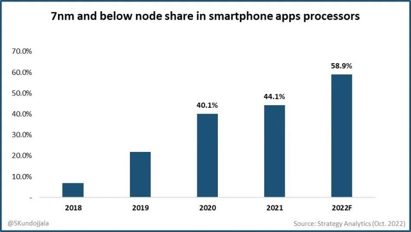 市场调研机构 Strategy Analytics 最新数据显示,台积电在智能手机 AP 代工市场份额将在 2022 年达到历史新高,约为 85%。
