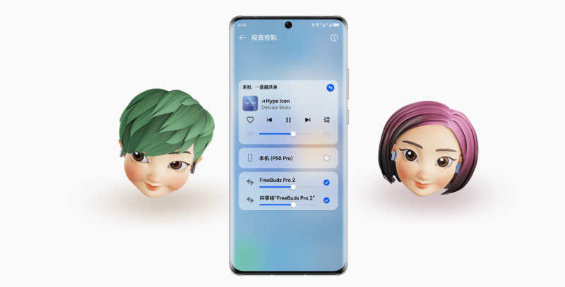 此外,在影音娱乐场景下,HarmonyOS 3全新的音频分享功能支持手机同时连接两幅FreeBuds Pro 2。有了这个功能,当我们在地铁等嘈杂的环境中也可以跟朋友分享一首歌,或者精彩影视剧,只需在超级终端中连接TA的耳机即可分享,既操作简单又保证了双方都能有出色的音效体验。