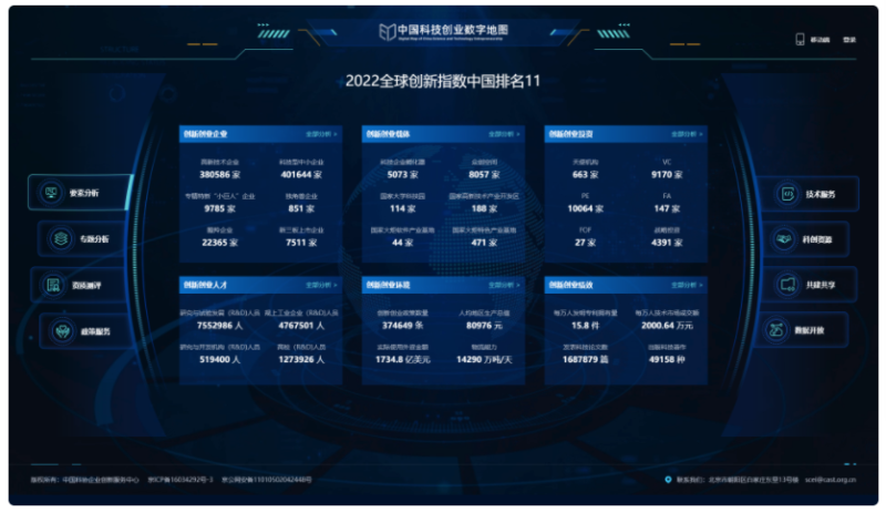 新一代信息技术加速数字经济快速发展,创新创业服务数字化进程也加速进行。为进一步推动双创升级,以数字化服务赋能科技创新,“中国科技创业数字地图3.0”(下文简称“科创数字地图3.0”)测试版上线,开始试运行。在此前汇聚千万级双创数据、展示双创发展态势的特色基础上,新一版新增了政策服务、专题分析、资质测评等多样数字化服务,用户可随时通过PC端和移动端进行测试和体验。