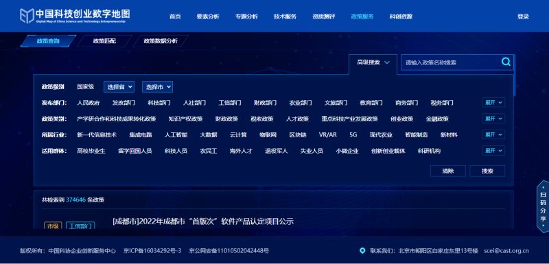 据了解,在深入调研各类用户群体需求的基础上,科创数字地图3.0相比2.0版,从页面设计到功能做了全面的调整优化,在显要位置新增了政策服务、专题分析、资质测评等一系列的数字服务。