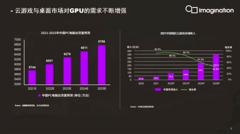 云技术方面,Imagination之所以把云游戏单独拿出来讲,应该是基于其移动端重图形渲染的先进GPU产品也同样适用于云端服务器。白农说2019年是云游戏元年,而“中国也是开创云游戏的根据地。预计到2025年,云游戏会成为350亿元规模的市场,年复合增长率75%。这也为国产GPU提供了很大的增量市场”。