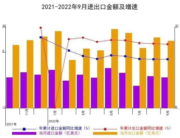 根据通用机械行业49个税号主要产品海关统计显示,1-9月通用机械主要产品进出口总额337.64亿美元,同比增长3.63%,其中:进口110.51亿美元,同比下降9.3%;出口227.13亿美元,同比增长11.35%。进出口顺差116.61亿美元,同比增长41.98%。