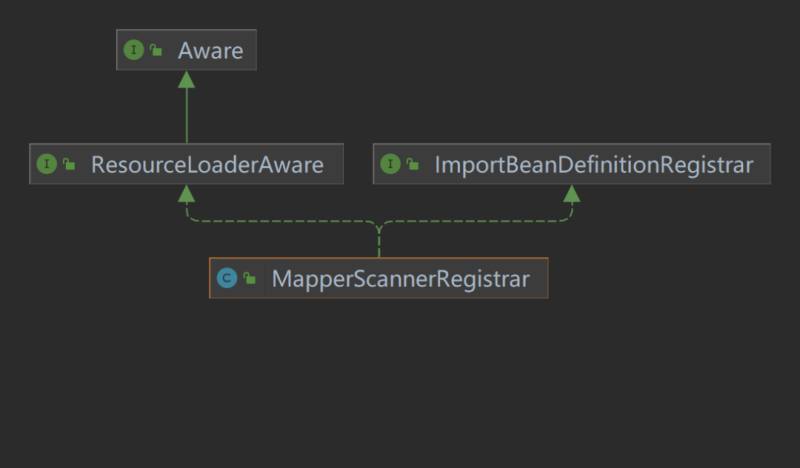 我们来看MapperScannerRegistrar这个类的继承关系图: