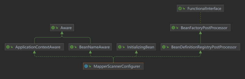 后续Spring就会基于这个MapperScannerConfigurer做一系列文章,看下它的继承关系: