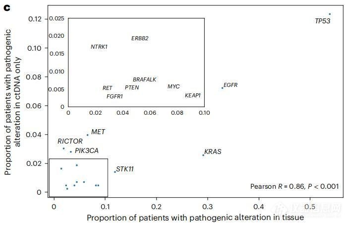 研究人员发现的仅ctDNA检测到的变异其实也是组织中的常见变异,这些变异中,继发性耐药基因的比例很高,尤其是RICTOR、NTRK1、MET和ERBB2扩增和PIK3CA突变。