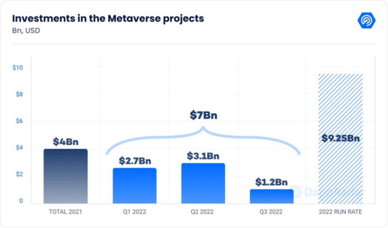 数据显示,元宇宙和Web3游戏项目在2022年已累计融资约70亿美元,第三季度的融资额达到12亿美元。