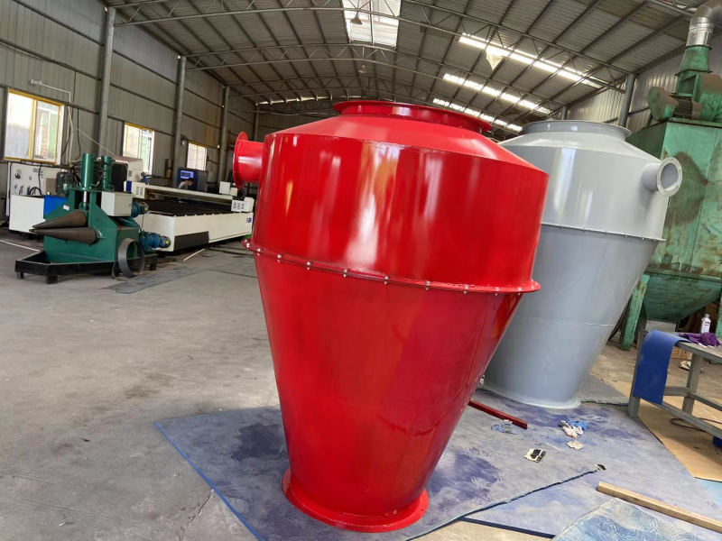 4、旋流型管道火花捕集器,内部安装了旋流板,使进入的火花急速产生气流涡旋,多次撞击而熄灭,掉入底部灰仓。