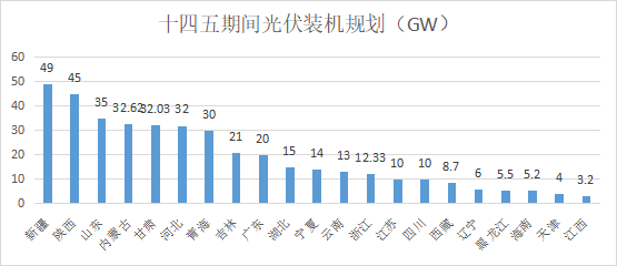 十四五期间部分省份光伏装机规划,哔哥哔特资讯整理