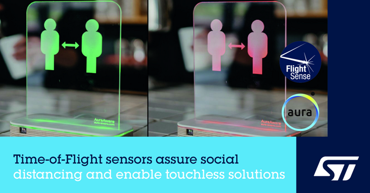 意法半导体影像产品部业务总监David Maucotel表示:“Aura Aware的这款创新产品是我们FlightSense技术的一个优秀创新用例。ST的ToF传感器可以在许多方面帮助保护人们的健康,既能确保人们遵守社交距离规定,又能无接触操作我们日常使用的各种产品。”