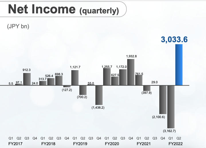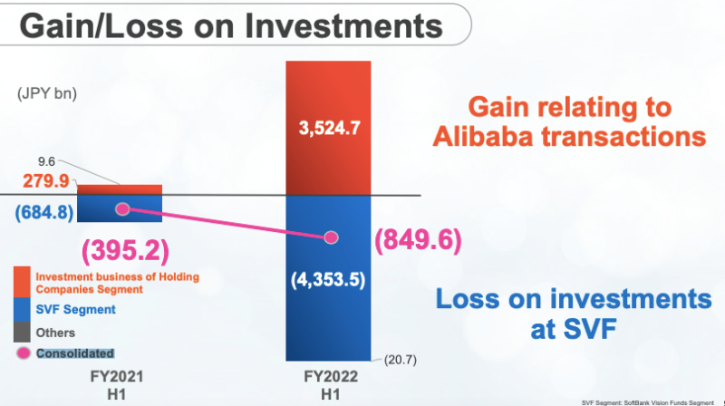 11月11日,软银集团公布了上半财年(4—9月)报告。综合来说,软银在2022财年上半年收获了3.2万亿日元的净销售额、投资损失8496亿日元(约合人民币430亿元)以及1291亿日元的净亏损,亏了约合人民币66亿元。