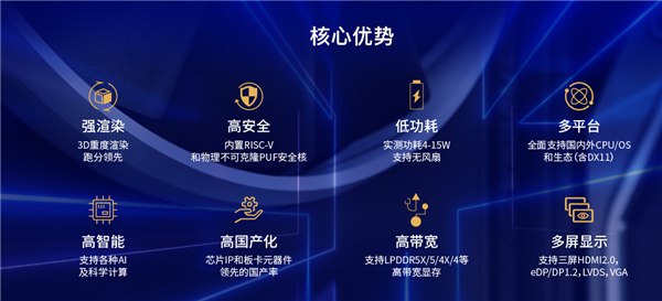 风华2号是一款4K级高性能渲染的桌面和笔记本GPU,集高清三屏显示与智能AI边缘计算于一体。