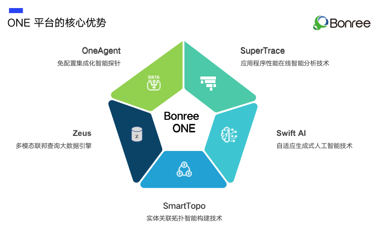 据贺安辉介绍,Bonree ONE 2.0的不凡来自于博睿近二十年的技术沉淀,淬炼出的五大优势,也指明可观测平台的发展道路。