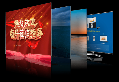 会议盒子支持壁纸轮播,非会议投屏时间可以作为企业文化宣传窗口或者欢迎辞;