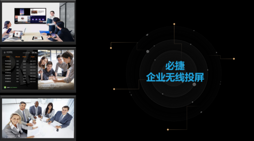 必捷企业会议室无线投屏解决方案是基于企业级的会议场景,实现手机、电脑的无线投屏和屏幕分享,让用户免除会议时繁琐的接线操作,同时系统支持与第三方智能办公系统对接集成,为客户提供更加智能便捷的办公服务,提高工作效率。