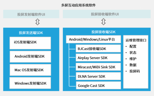 智能终端无线显示投屏:iOS、Android、Windows、Mac智能终端无线显示,兼容Airplay、Miracast、WiDi、DLNA、GoogleCast、BJCast协议。
