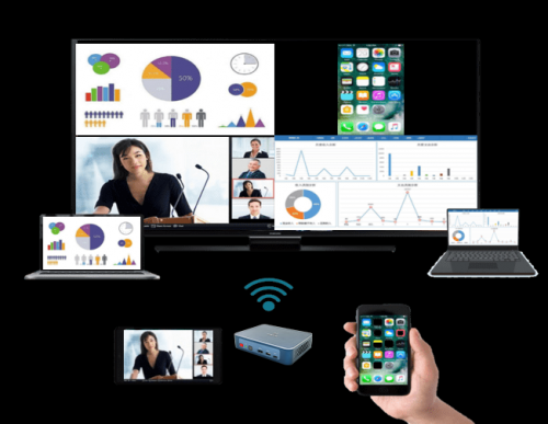 多路无线投屏显示:最大可支持4路智能终端同屏显示,无终端类型限制。支持4K高清显示