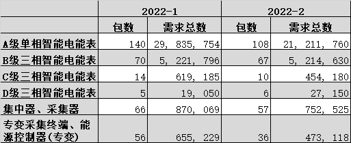 2022年国网电能表和用电信息采集项目两次招标需求情况