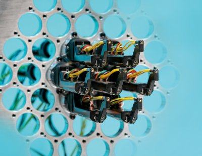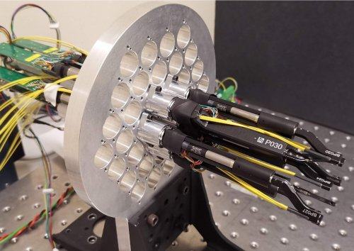 三根光纤在小型机器人中排列。一根是为可见光光谱设计的,另一根是为红外光谱设计。第三根用于校准。在其帮助下,光纤尖端分三步移动到位,精度仅为几微米:在第一次粗略对准中,两个电机转动,直到用于观察的光纤对准目标,平均偏差为50微米。望远镜中的摄像头指向机器人的前端,现在可以检测校准光纤的尖端并测量其位置。在两个进一步的定位步骤中,机器人头部然后以误差小于5微米的精度移动到位。