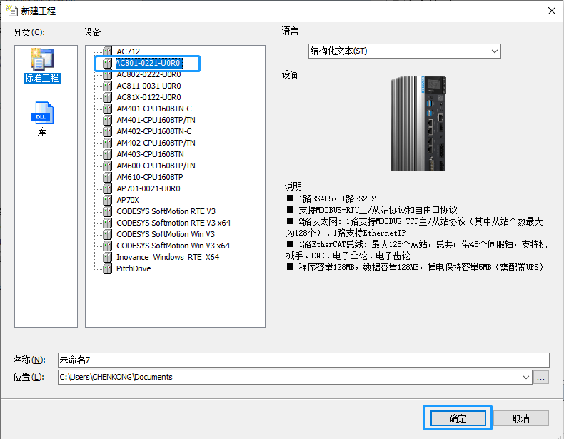 1、新建工程,选择对应的plc型号