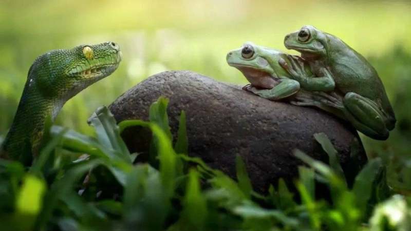 起源于蛇的基因已多次跨越物种进入世界各地的青蛙基因中。图片来源:Fahmi Bhs