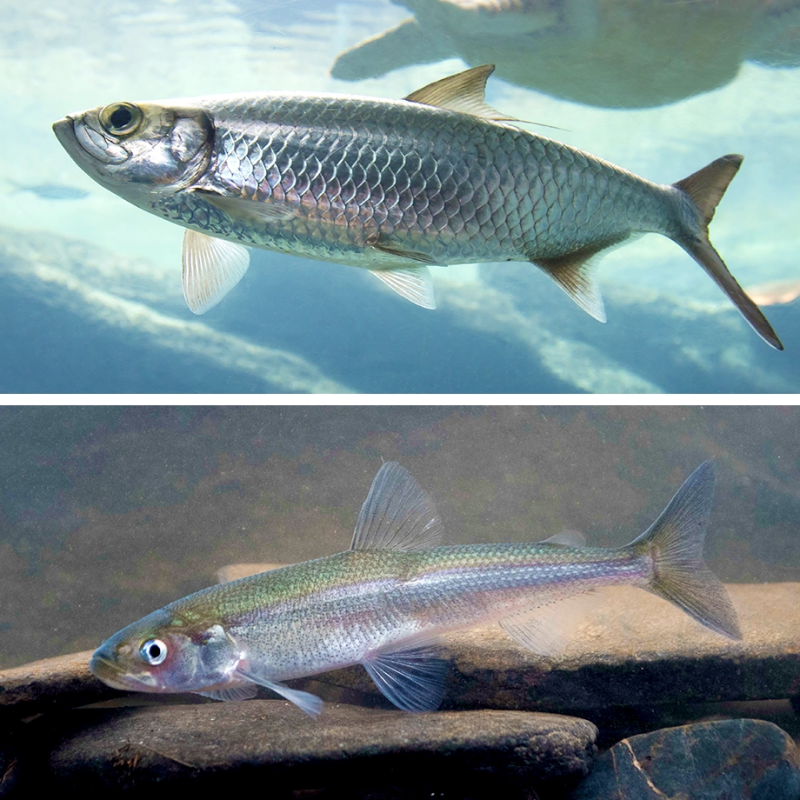 鲱鱼(上)和胡瓜鱼(下)都是冷水鱼,它们携带相同的基因使其可以在冷水中生存。图片来源:Four Oaks & Jack Perks