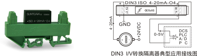 概述:DIN3 SY U-P-O / SY A-P-O 系列小体积、低成本、高精度、标准DIN35导轨安装的 SY U-P-O 系列直流电压信号与 SY A-P-O 系列直流电流信号两隔离(工作电源与信号通道地线隔离)放大器,采用导轨安装低成本小体积设计方案,主要用来解决传感器与仪器仪表、PLC、DCS 之间:0.4-2V/0-5V/1-5V/0-10V/0-20mA/4-20mA 等非标准模拟量与标准模拟信号的转换问题。产品具有高精度和高线性度特点,工作电源与信号通道间 3000VDC 隔离电压,可抑制供电系统中浪涌和共模谐波干扰。这款两隔离放大器使用方便、免零点和增益调节,无需外接调节电位器等元件,适用于模拟电压与电流信号间的转换放大且输入与输出无需隔离的场合。与顺源其它 ISO系列隔离放大器产品相比,具有体积小、成本低、频响高及更好的精度和线性度。