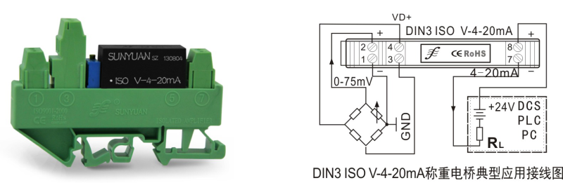 概述:DIN3 ISO V-4-20mA 系列小体积、低成本、高精度、标准DIN35导轨安装的V/I转换隔离变送器,是一种电压输入、两线制电流输出回路供电的信号隔离变送器。通过后级电流回路馈电方式,给输入端提供一组5V(3mA)功能拓展电源给前级设备供电,并接收来自前级设备输出的电压信号。经模块隔离后,输出4~20mA的标准两线制电流信号。本产品采用独有的电磁隔离模式及高效能后级馈电技术,实现电压信号到4~20mA 标准信号的精准隔离转换,产品与各种仪表的模拟量输入端口(如PLC、DCS 系统等)相匹配,使用十分方便,客户无需外加任何器件,即可实现电压信号输入、位移电位器等需配电型传感器和电桥(称重)检测电路的电压信号隔离变送。信号输入与输出3000VDC 隔离,满度和零点都可由用户通过调节电位器进行调节、校准,能满足工业级宽温度、潮湿、震动的现场恶劣工作环境要求。
