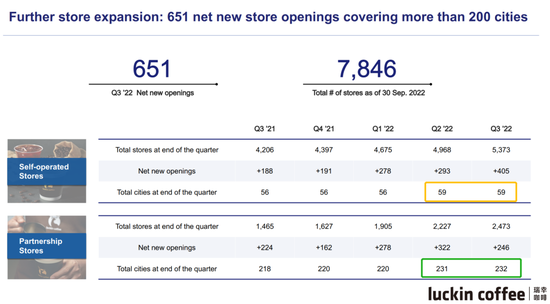 第三季度,瑞幸新增门店651家,平均每天开业7家,环比增长9%,同比增长38%,总店数达到7846家,高于星巴克的6021家。一个季度开店量就接近总店数的十分之一,实为“开店狂魔”。