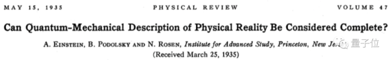 1935年,爱因斯坦、波道尔斯基和罗森三人联名,在物理评论快报上发表了一篇题为《能认为量子力学对物理实在的描述是完全的吗?》(Can Quantum-Mechanical Description of Physical Reality Be Considered Complete,简称EPR)的论文。