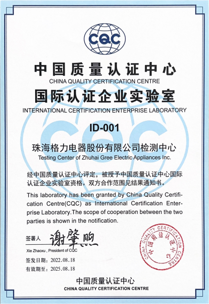 IT之家 11 月 28 日消息,据格力电器官方消息,2022 年 11 月 24 日,中国质量认证中心全球首张“国际认证企业实验室”评定证书颁发仪式在珠海格力电器股份有限公司举行,中国质量认证中心刘江副主任向格力电器颁发编号为 001 的评定证书。