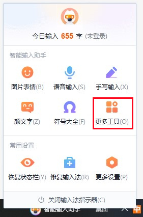 右键点击搜狗输入法的小图标,选择【更多工具】。