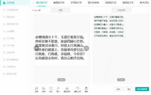 同时,网站可以设置调整图片方向、设置文字语言,从而提高文字提取的准确率。