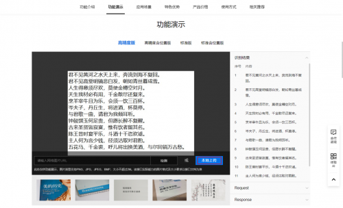 进入文字识别的功能页之后,点击【本地上传】,即可上传图片进行文字提取。提取完成的文字会显示在右侧,可以随时查看和复制。
