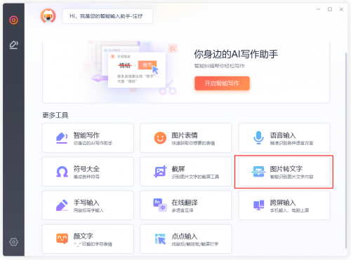 可以看到在搜狗输入法的智能助手界面,就有一个可以提取文字的【图片转文字】功能。