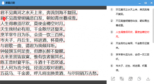 软件内置的图片转文字、截图转文字等功能,都可以根据情况轻松提取出图片上的文字。比如这个截图转文字,点击就可以快速截图,并且一键提取出图片中的文字。