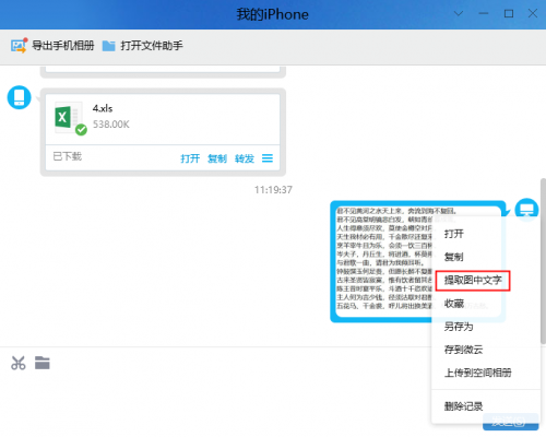 QQ是我们常用的社交聊天工具,但是它的文字提取功能也很强大。只要把图片发送给好友或者自己的设备,就可以进行文字提取操作。