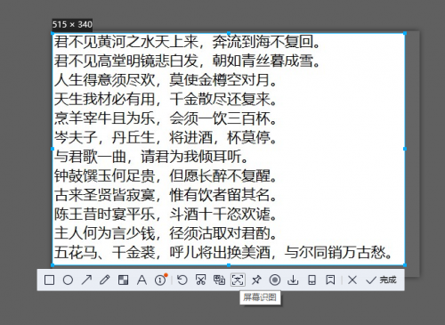 保持QQ在后台打开状态,快捷键【Ctrl+Alt+A】即可进行快速截图,当你截取屏幕上的文字之后,点击下方功能栏的【屏幕识图】按钮,即可提取截图里的文字。