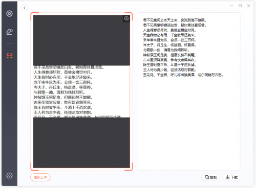 上传图片之后,就可以快速提取出图片的文字内容,并且支持快速复制与下载。