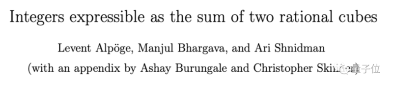 现在,终于有3位数学家成功突破了这个问题的瓶颈,第一次给出了可以拆解成两个有理数立方和的整数比例: