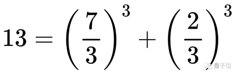 例如整数13,就可以被“拆”成有理数7/3的立方、以及有理数2/3的立方总和: