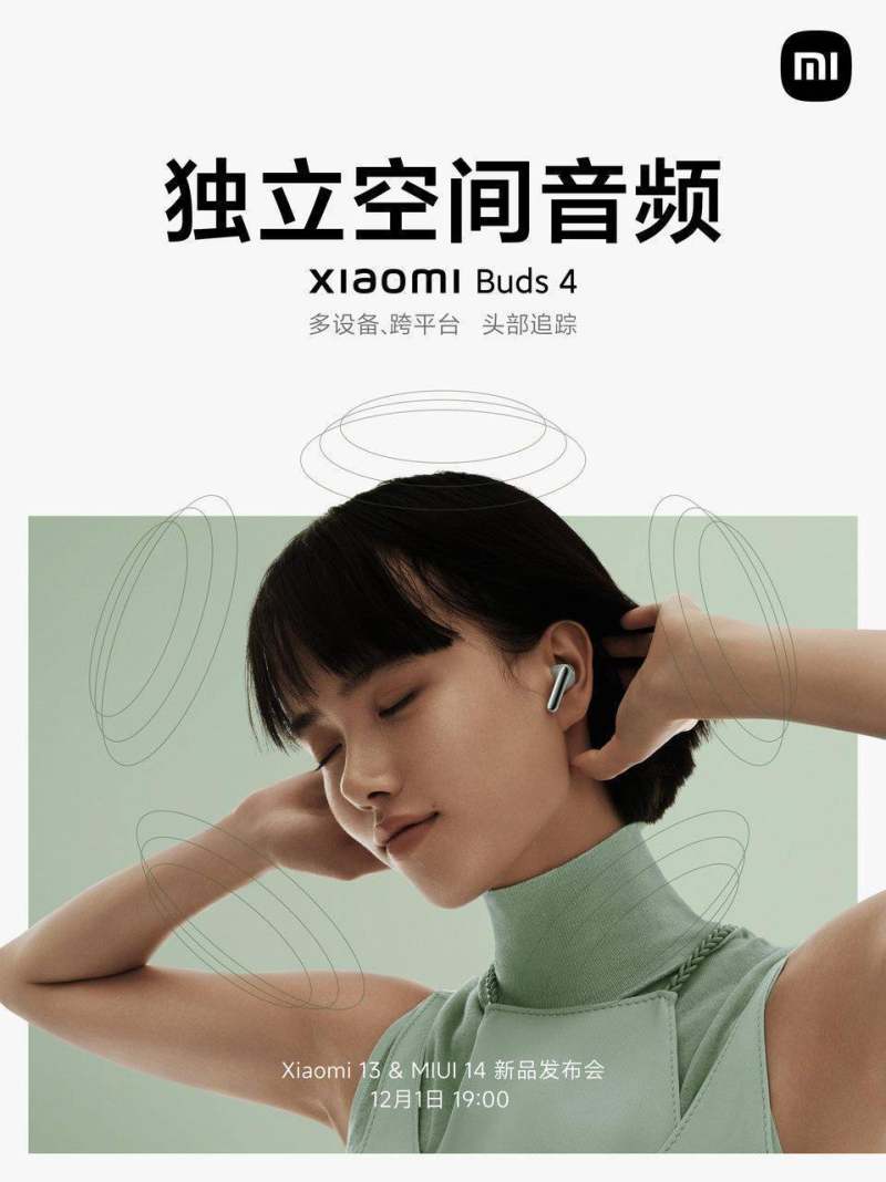 11 月 30 日消息,小米 13 系列 & MIUI 14 新品发布会将于 12 月 1 日(周四)晚七点举行,小米新款真无线耳机小米 Buds 4 也将在此次发布会上发布,今天官方对这款耳机进行了新的预热。