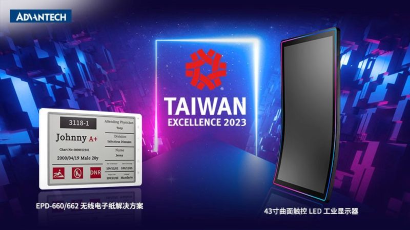 研华智能电子纸解决方案(EPD-660/662)与43寸曲面触控LED工业显示器(CRV31-430JP)从全台上千件产品脱颖而出,荣获第31届台湾精品奖。